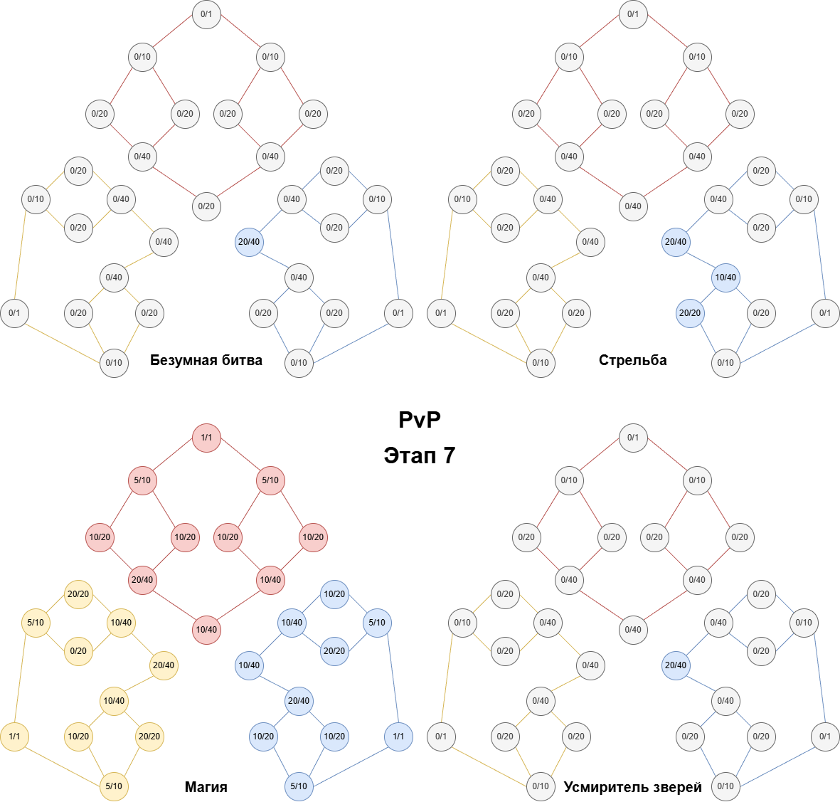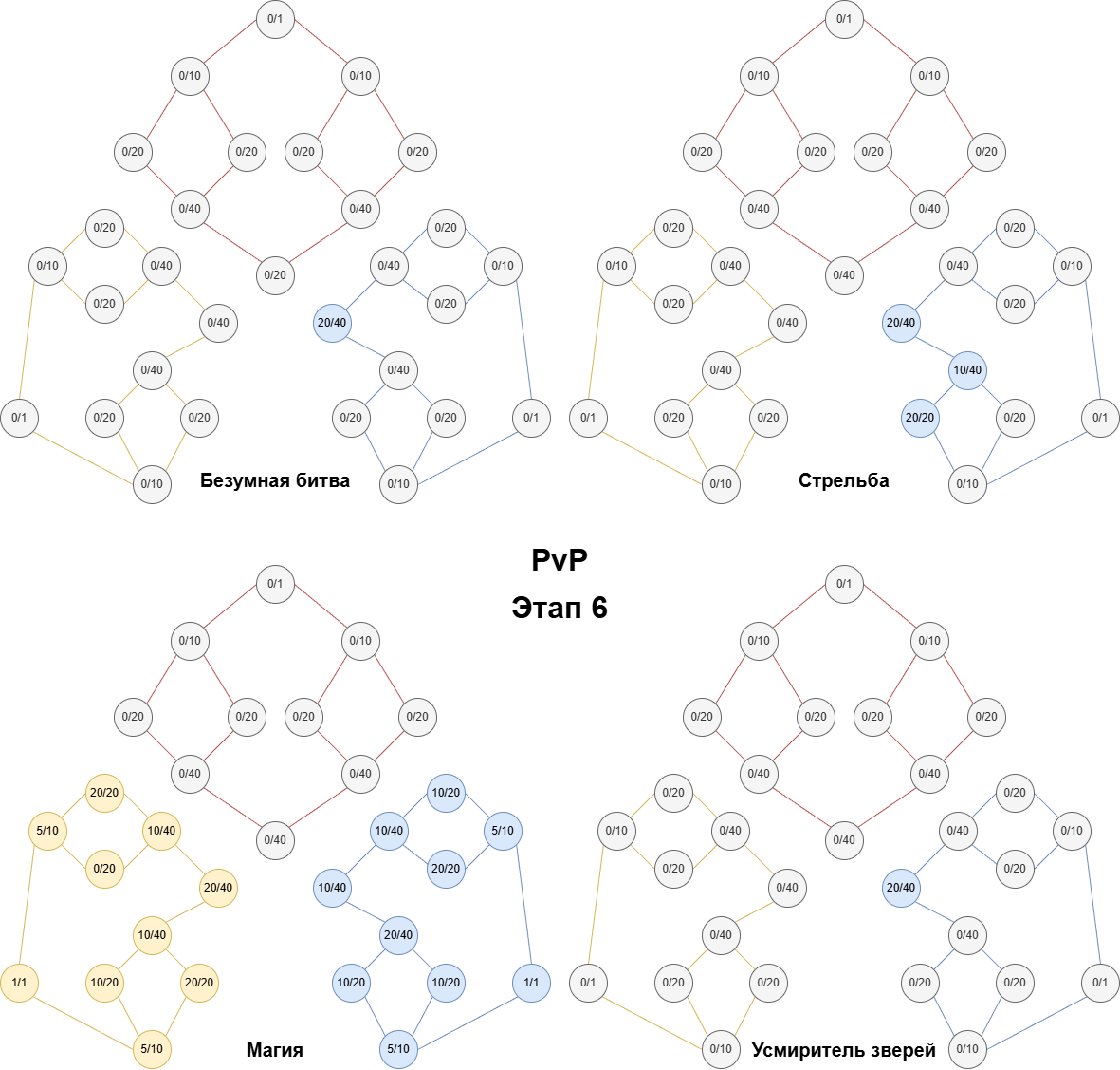 - В каждой ветке (Безумная битва, Стрельба, Магия, Усмиритель зверей):
